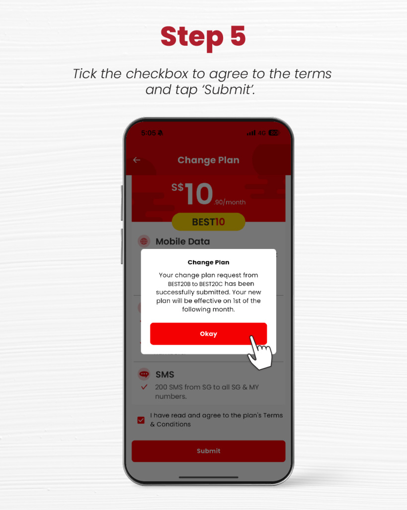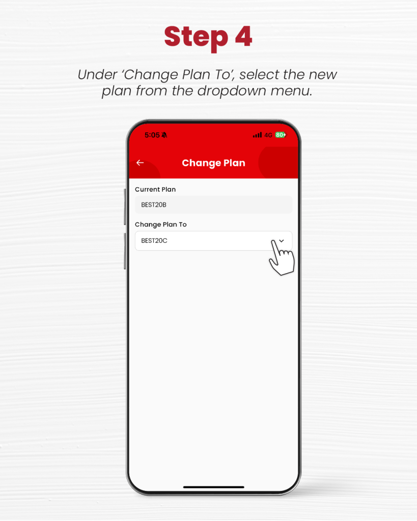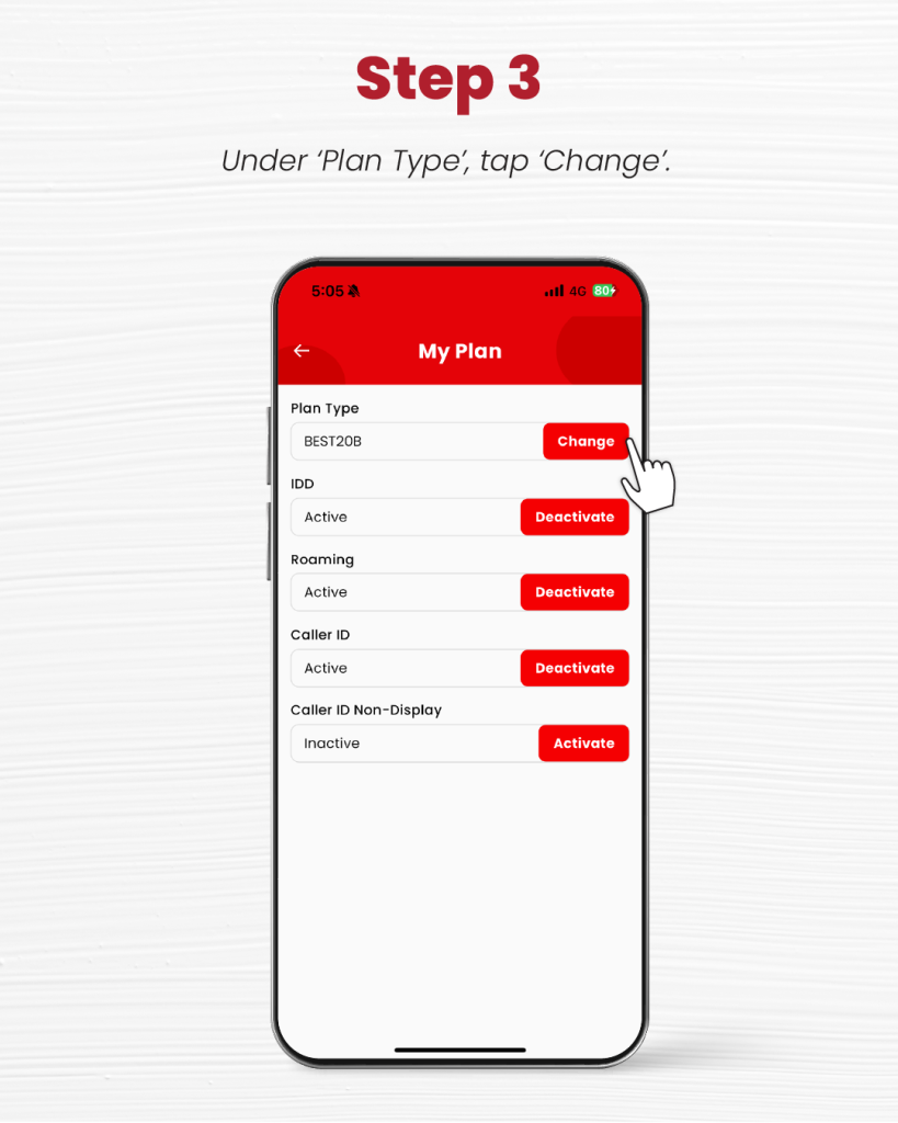 Subscribers can switch their base plan easily through our redONE 1 App on their phone: